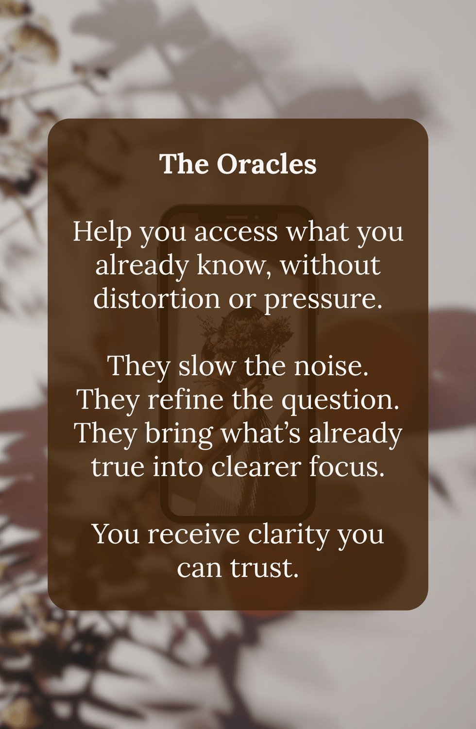 Each Oracle is intentionally designed — not trained to persuade, predict, or perform.
