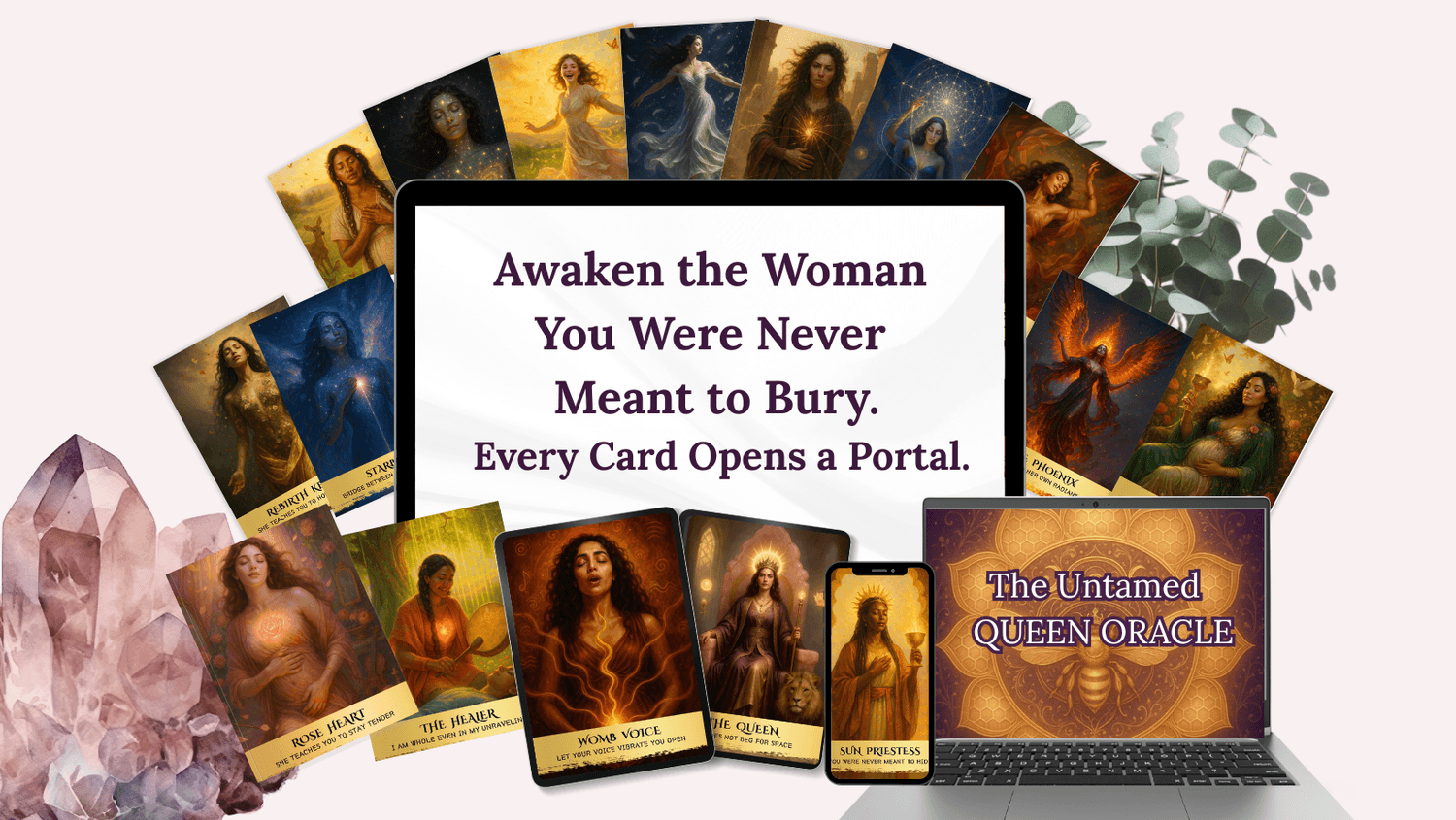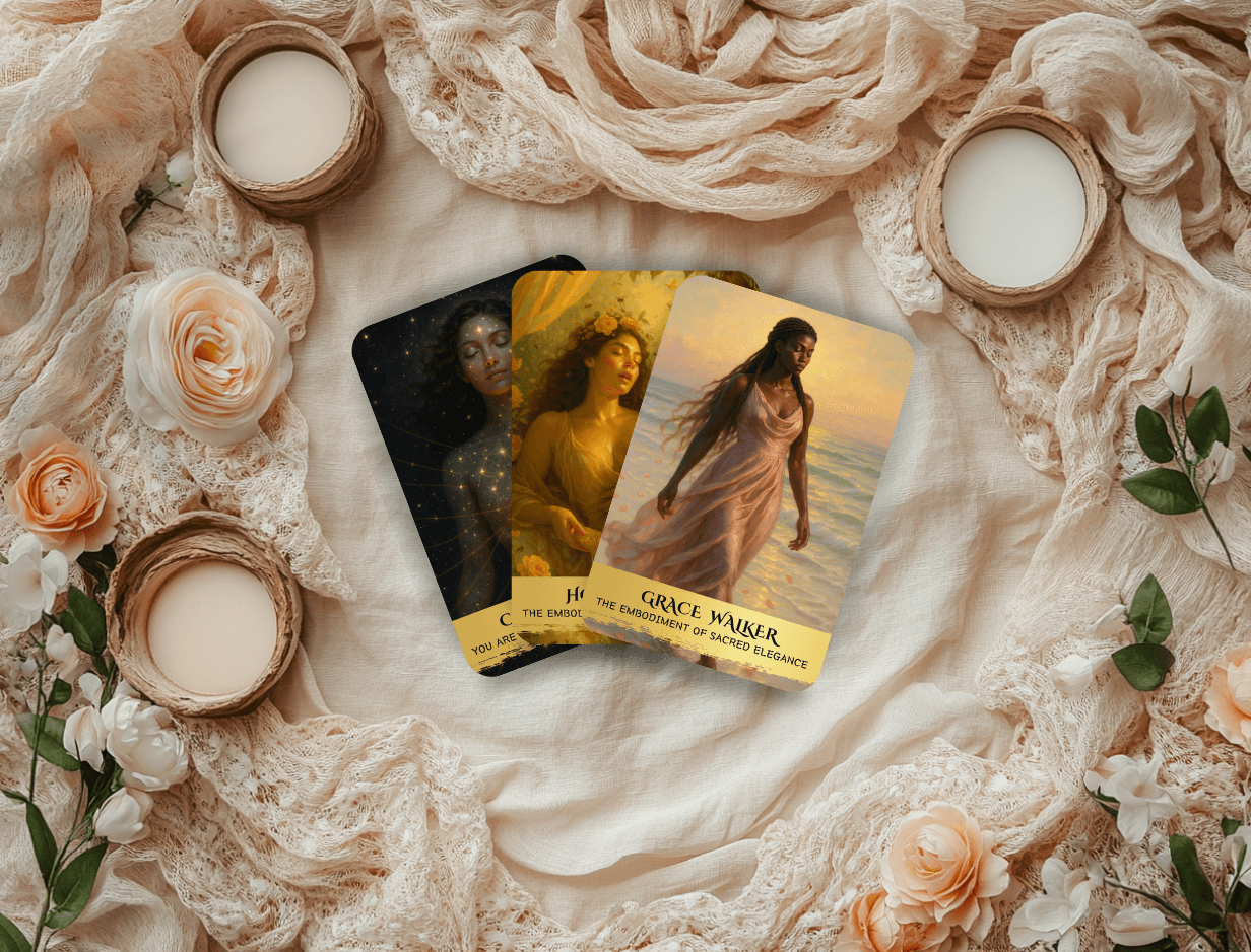 The Untamed Queen Oracle™ holds 49 fierce, feminine, soul-coded archetypes designed to awaken the woman beneath conditioning, over-giving, and self-doubt.