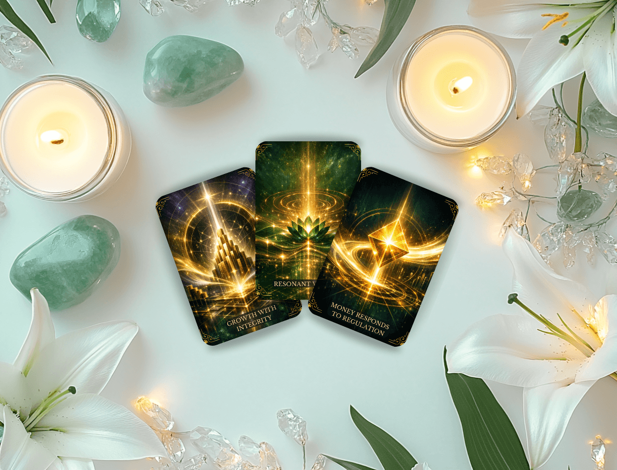 The Wealth Codes™ Deck is designed to help you regulate your nervous system around money — so decisions become clearer, confidence steadier, and expansion sustainable.